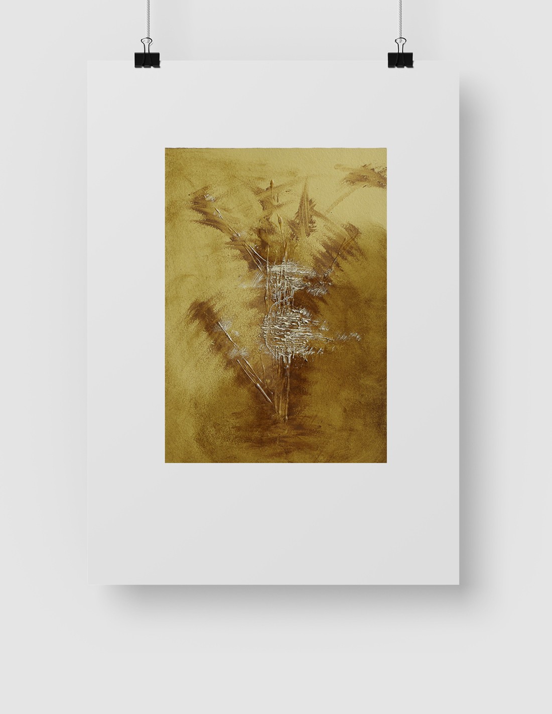 Art abstrait, peinture acrylique texturée travaillée dans la masse. Ton ocre jaune, bitume de Judée. Shakespeare nous inspire l'art au Liban.
