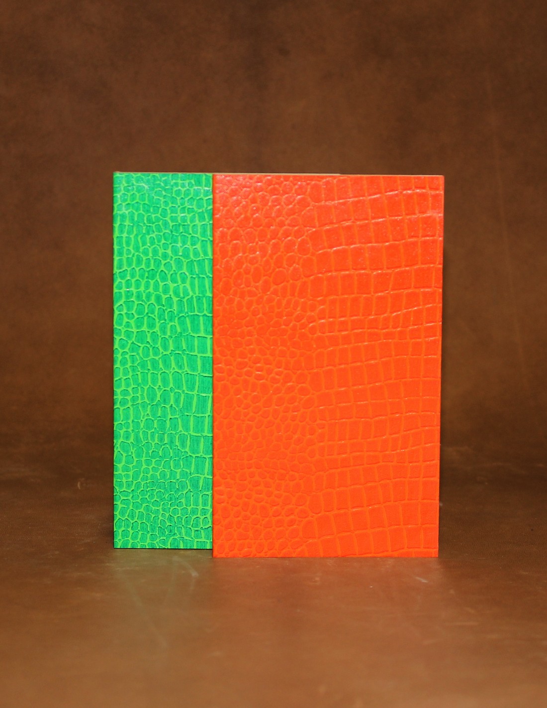 Lot carnets fantaisie grand format. Papier crocodile vert et orange